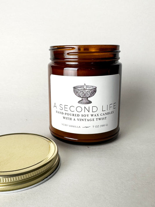 A Second Life Original Soy Candle – 7oz Amber Jar with Logo