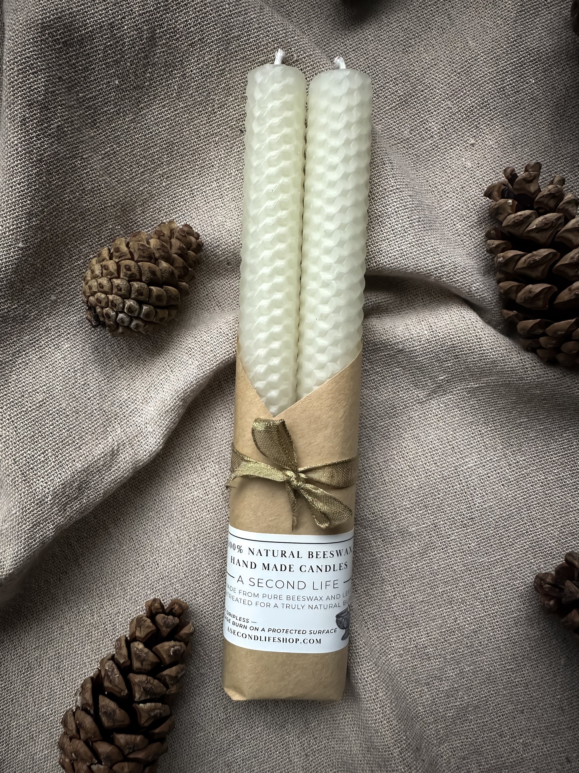100% Natural White Beeswax Taper Candles – Limited Edition - Set of Two