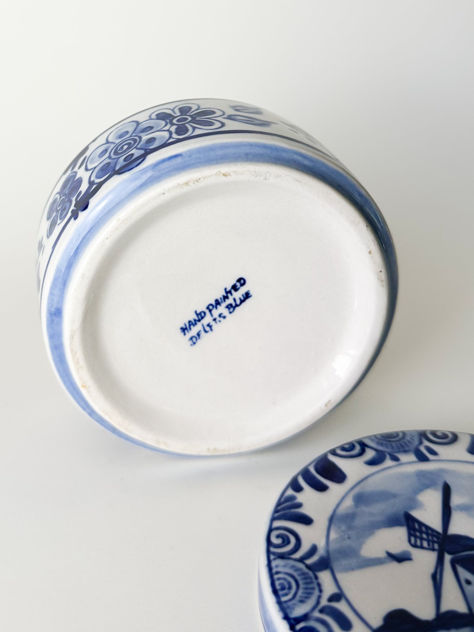 Delft Blue ceramics originated in the Netherlands in the 17th century, created as a European interpretation of imported Chinese blue-and-white porcelain. Produced primarily in the city of Delft, these wares became celebrated for their hand-painted designs depicting pastoral scenes, architecture, and daily life. Windmills, in particular, became an enduring symbol of Dutch identity and craftsmanship, frequently appearing in Delftware decoration throughout the centuries.