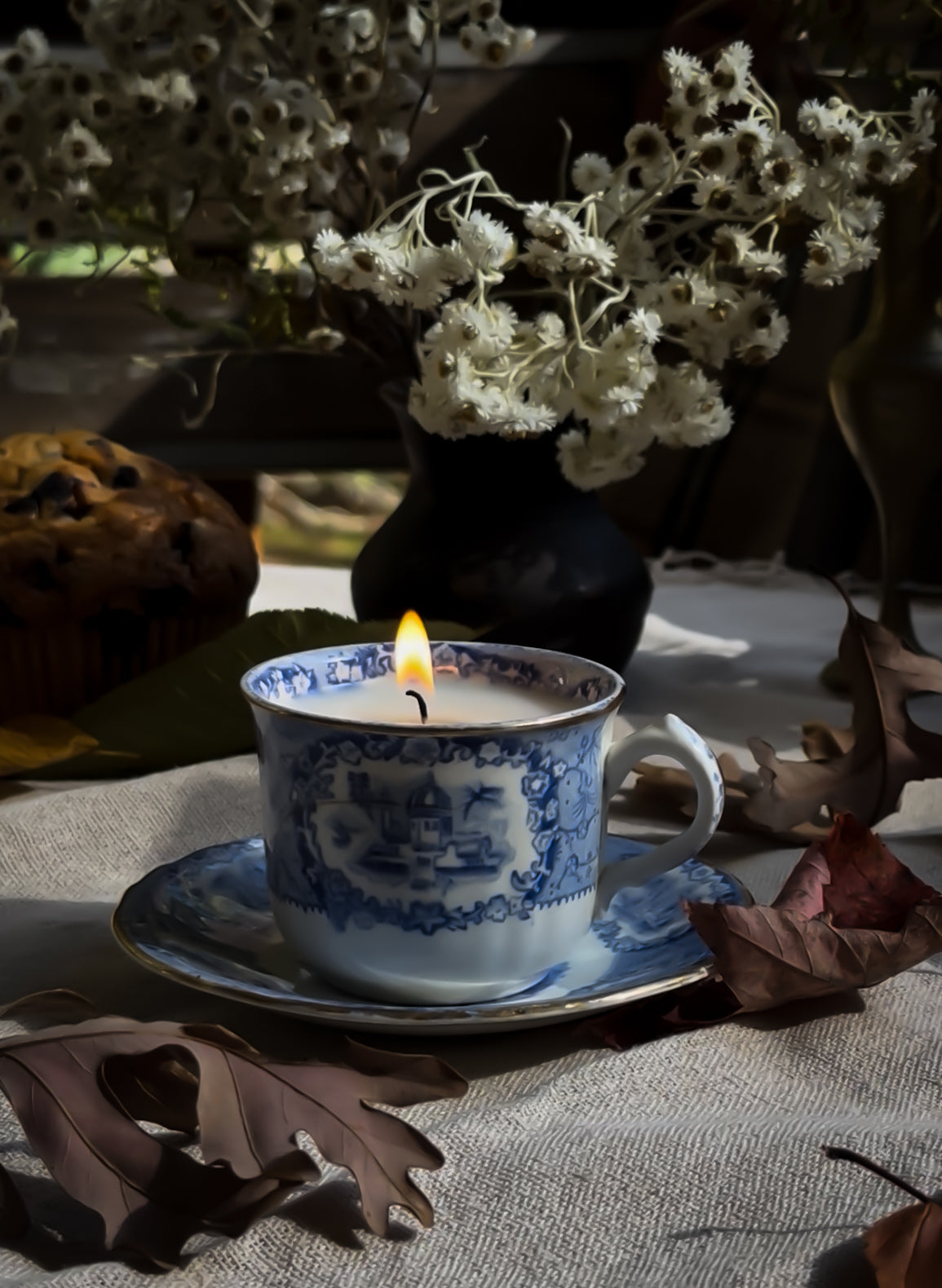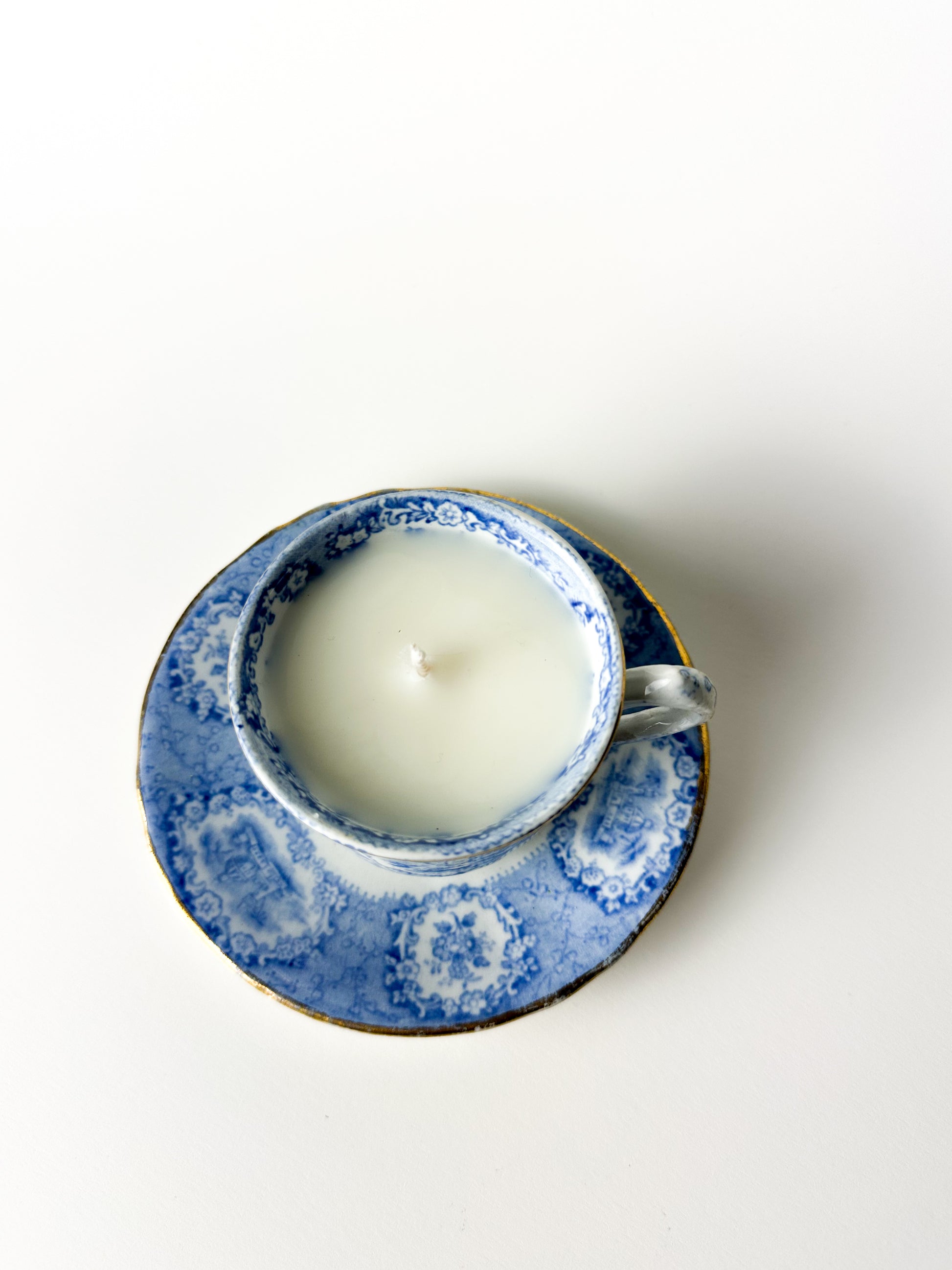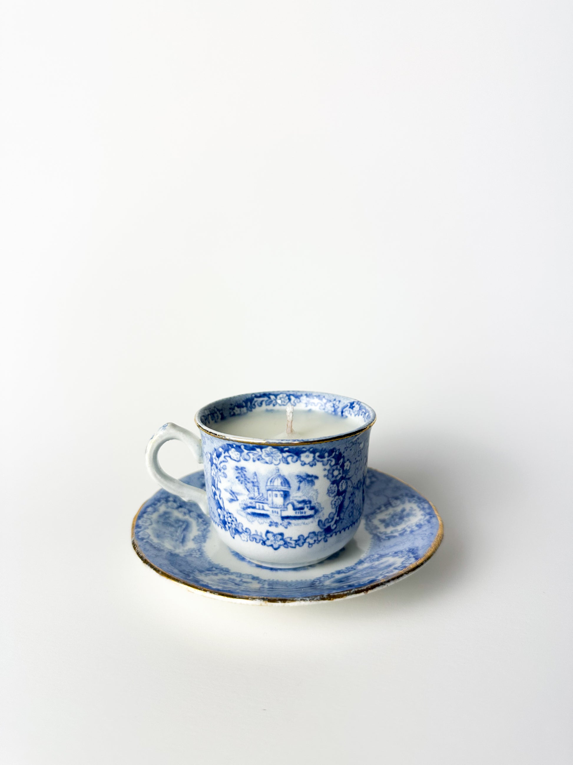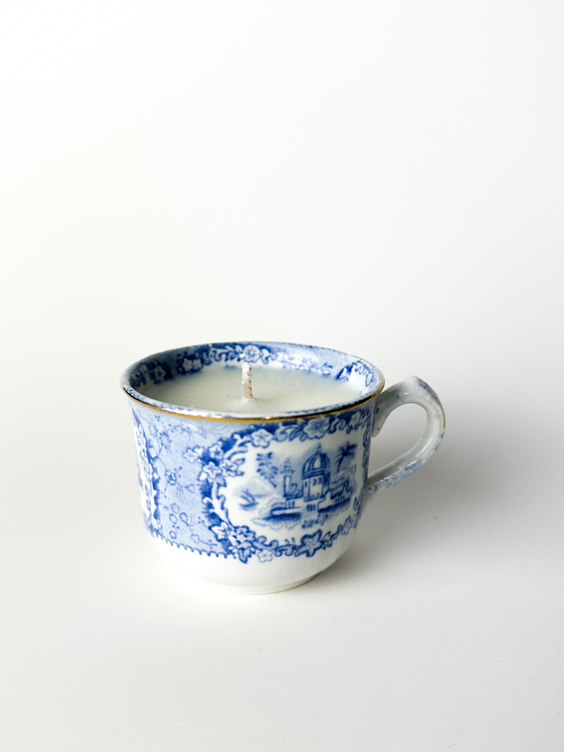 Each cup, with its detailed imagery and graceful form, carries nearly two centuries of history. Once part of a refined tea service, it now takes on a new life as a hand-poured candle — a blend of English tradition and modern warmth.