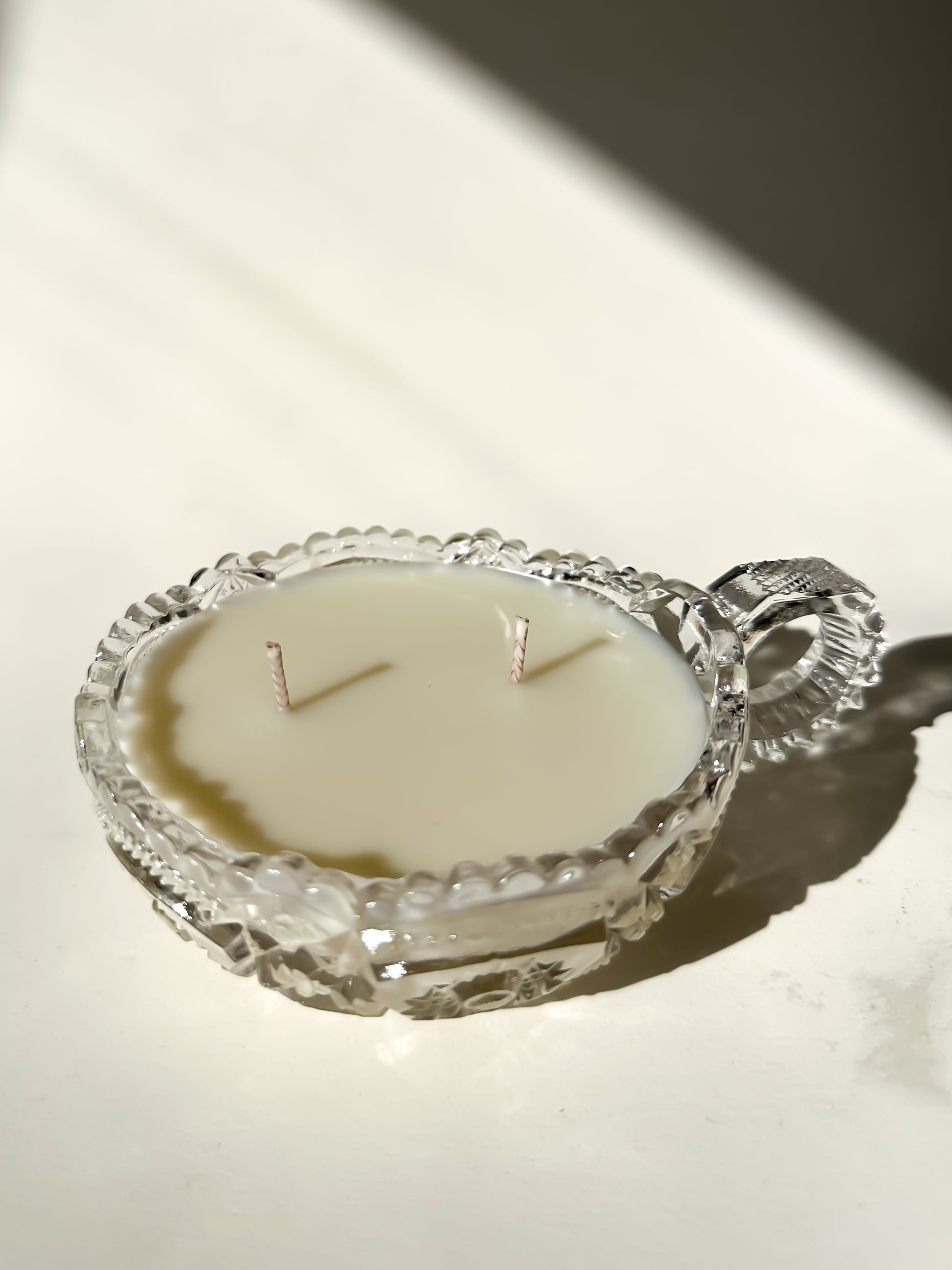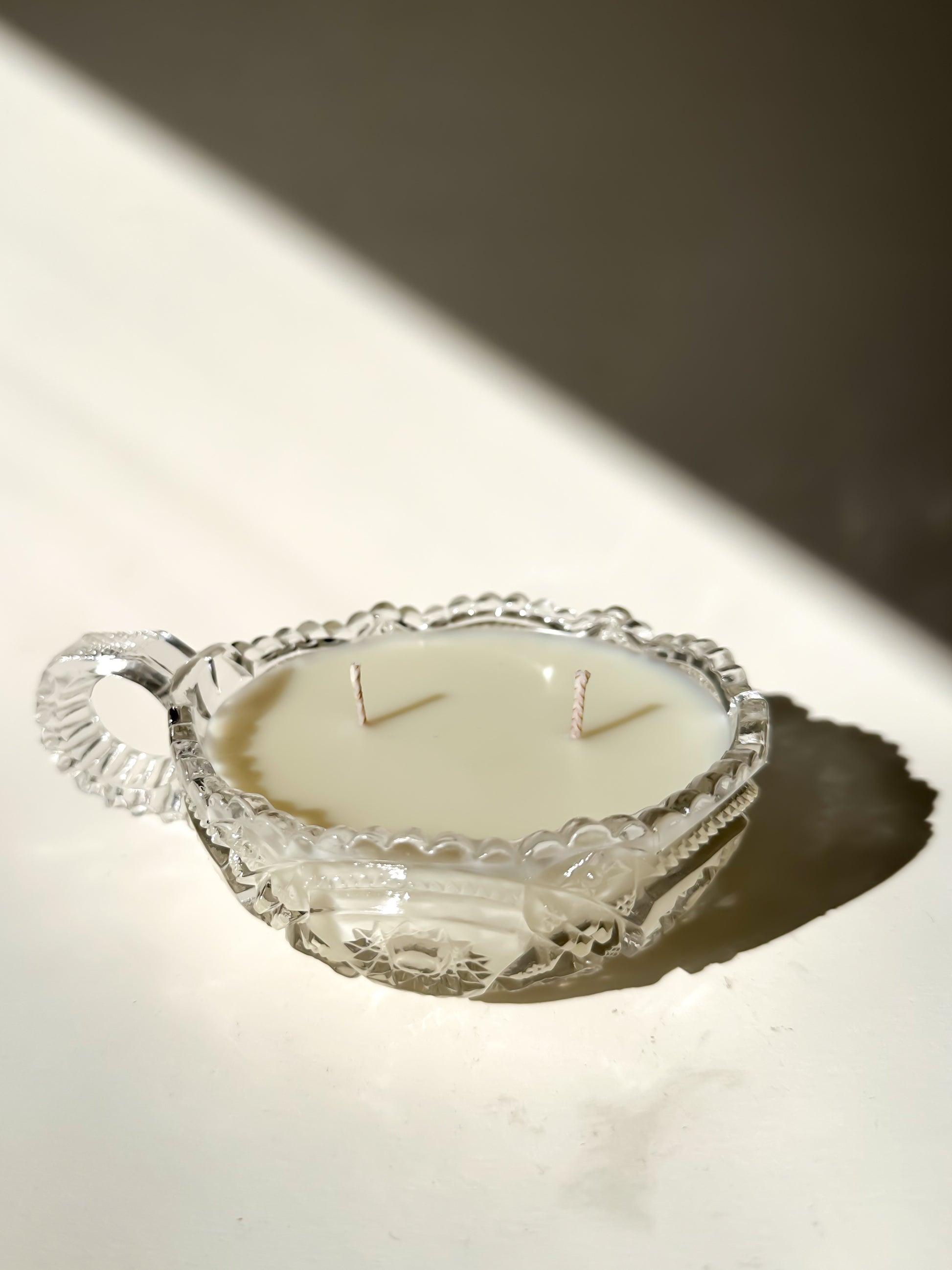 Originally intended for serving, this antique dish has been thoughtfully repurposed into a candle, honoring its history while giving it a warm and modern second life.