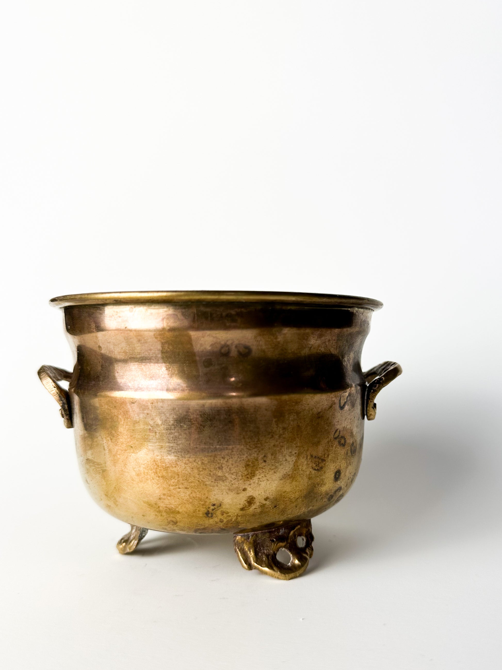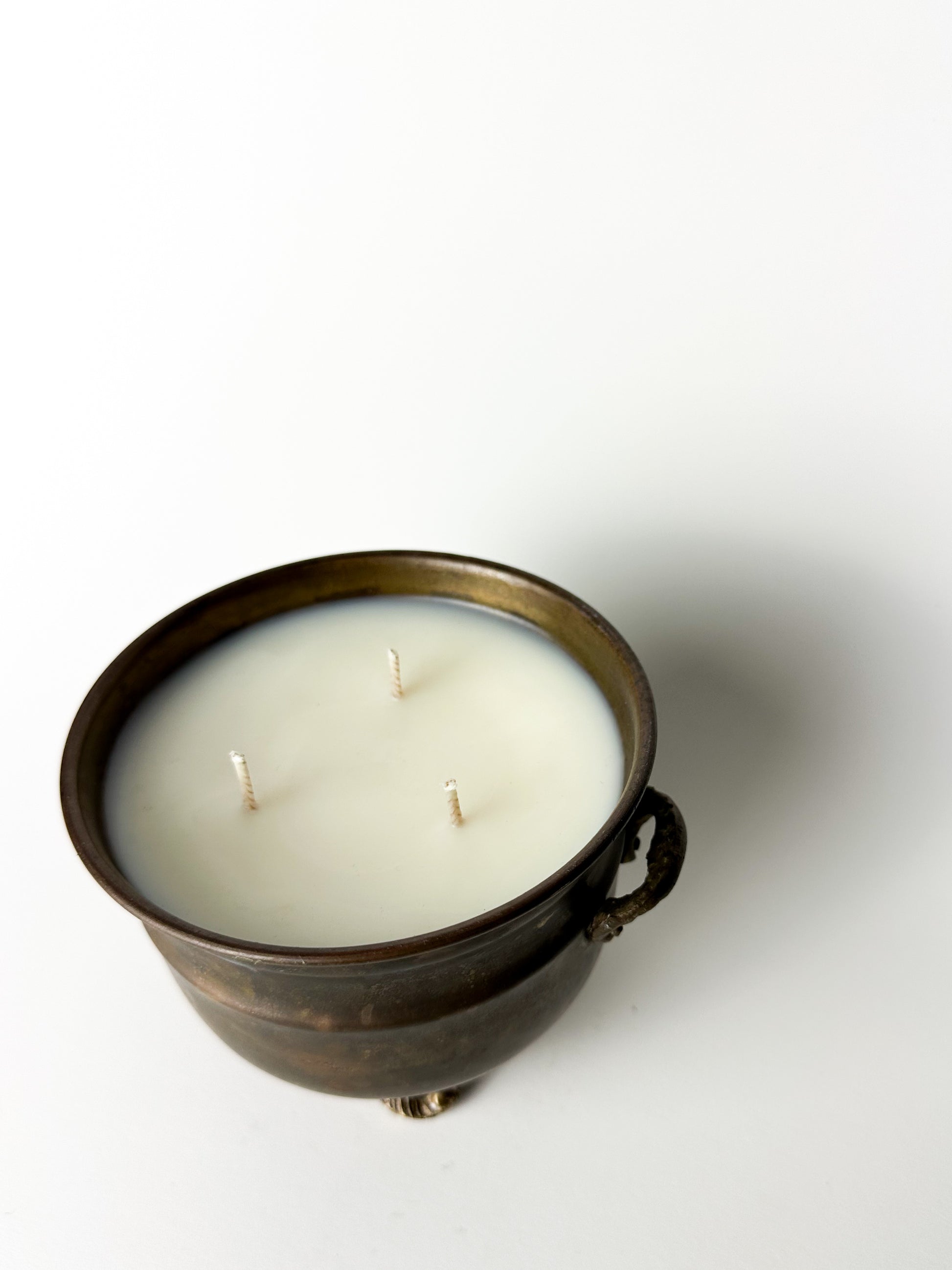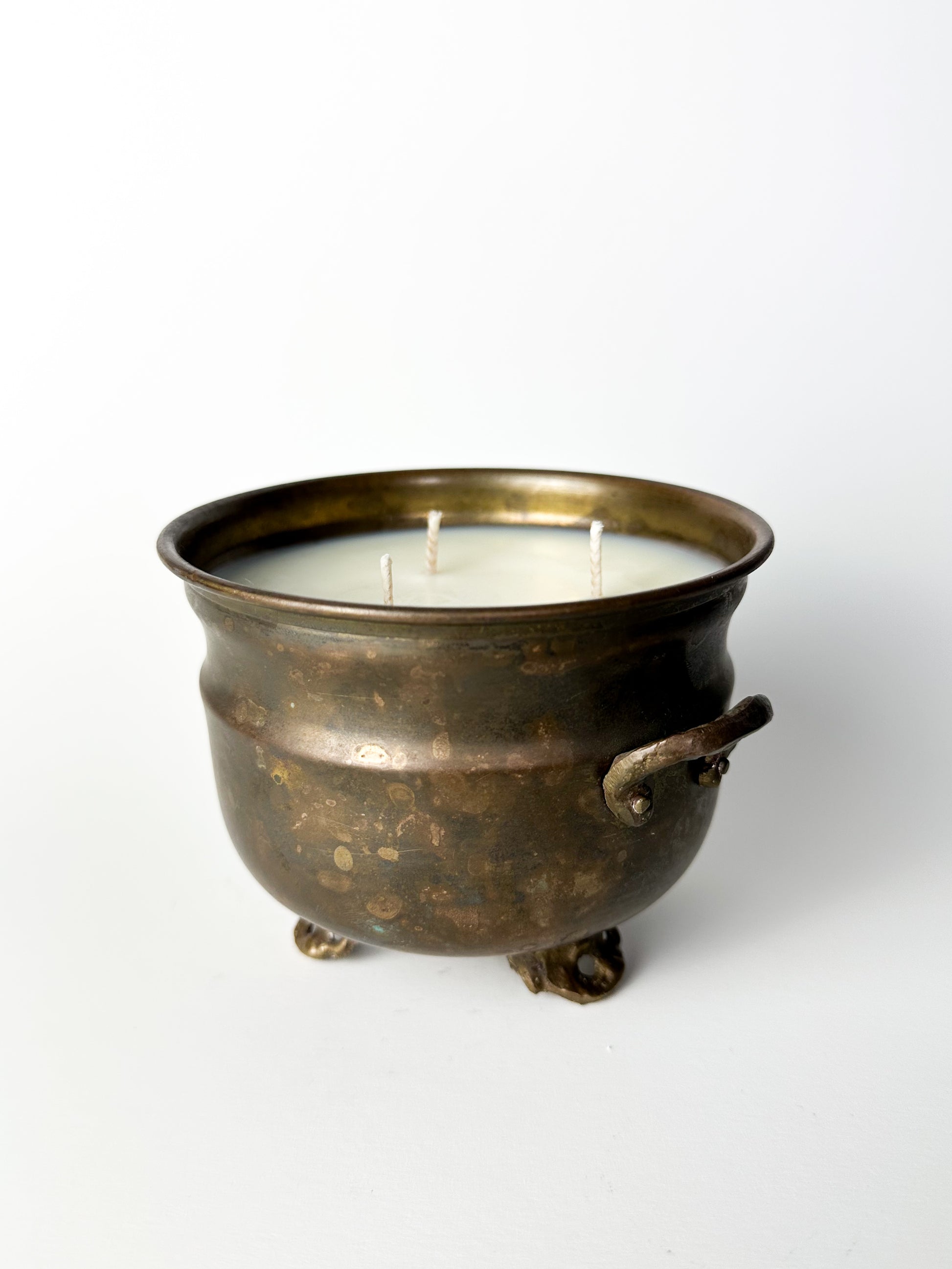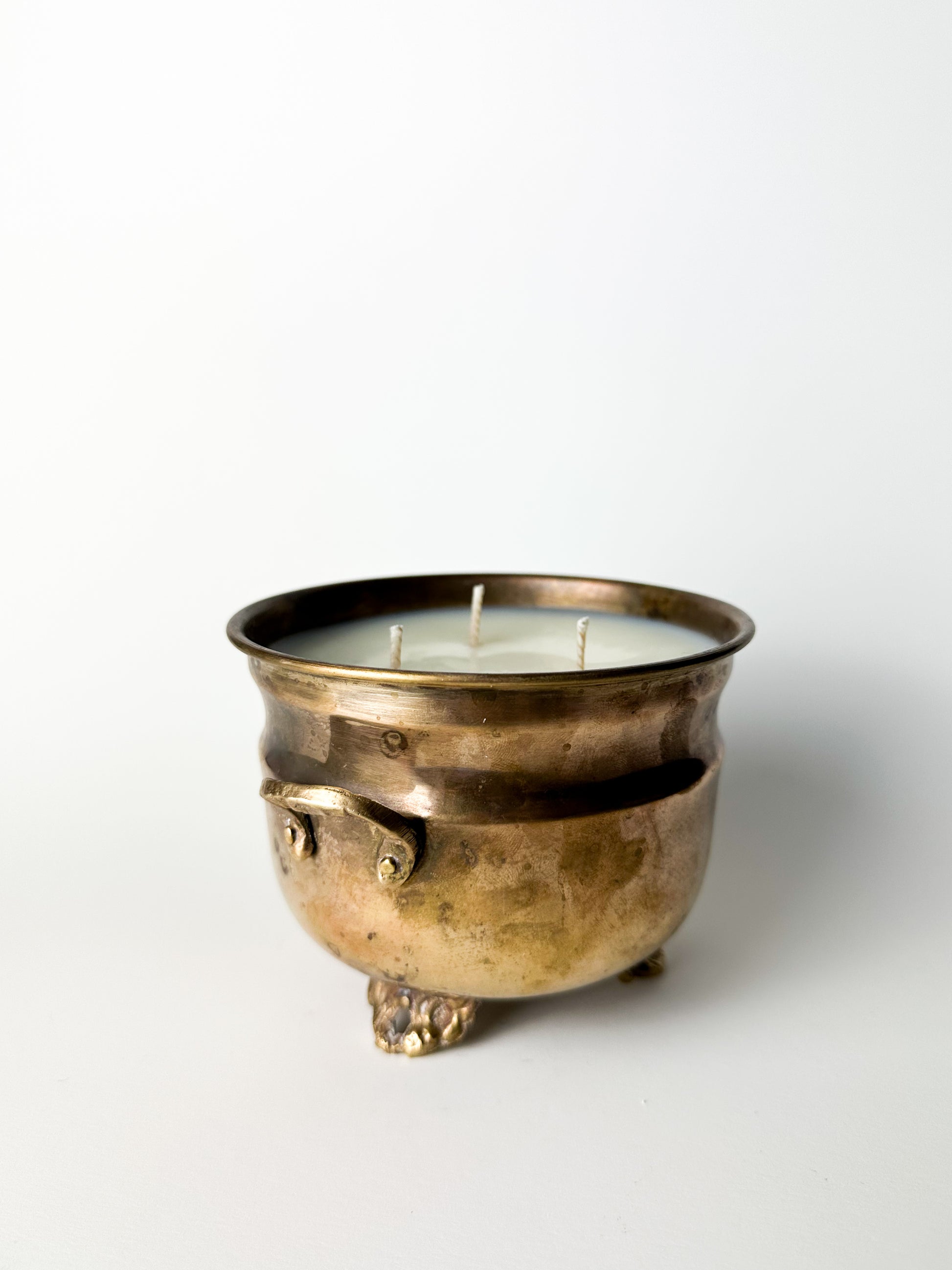 Antique Brass Planter Pot Candle with Claw Feet and Decorative Handles