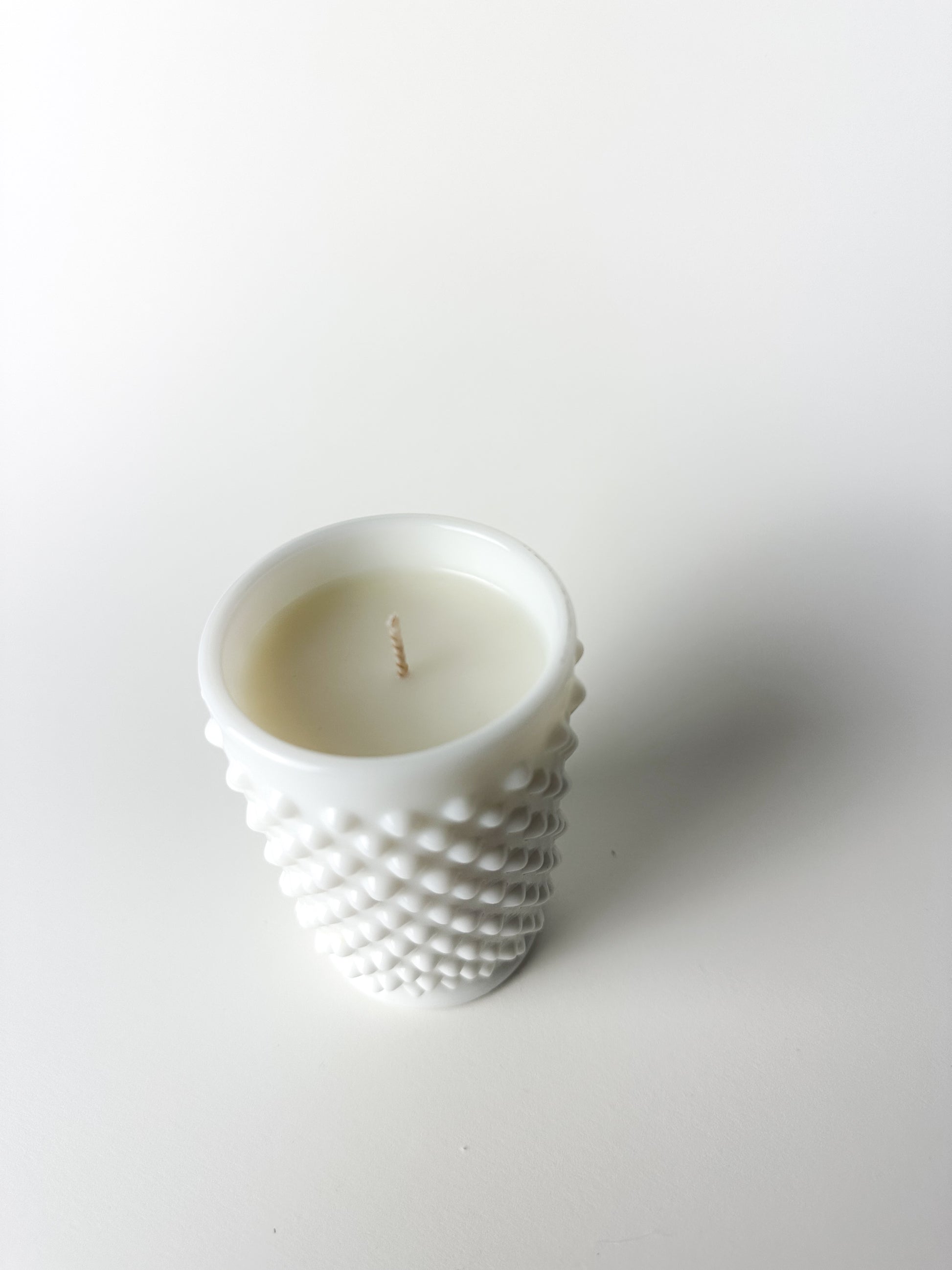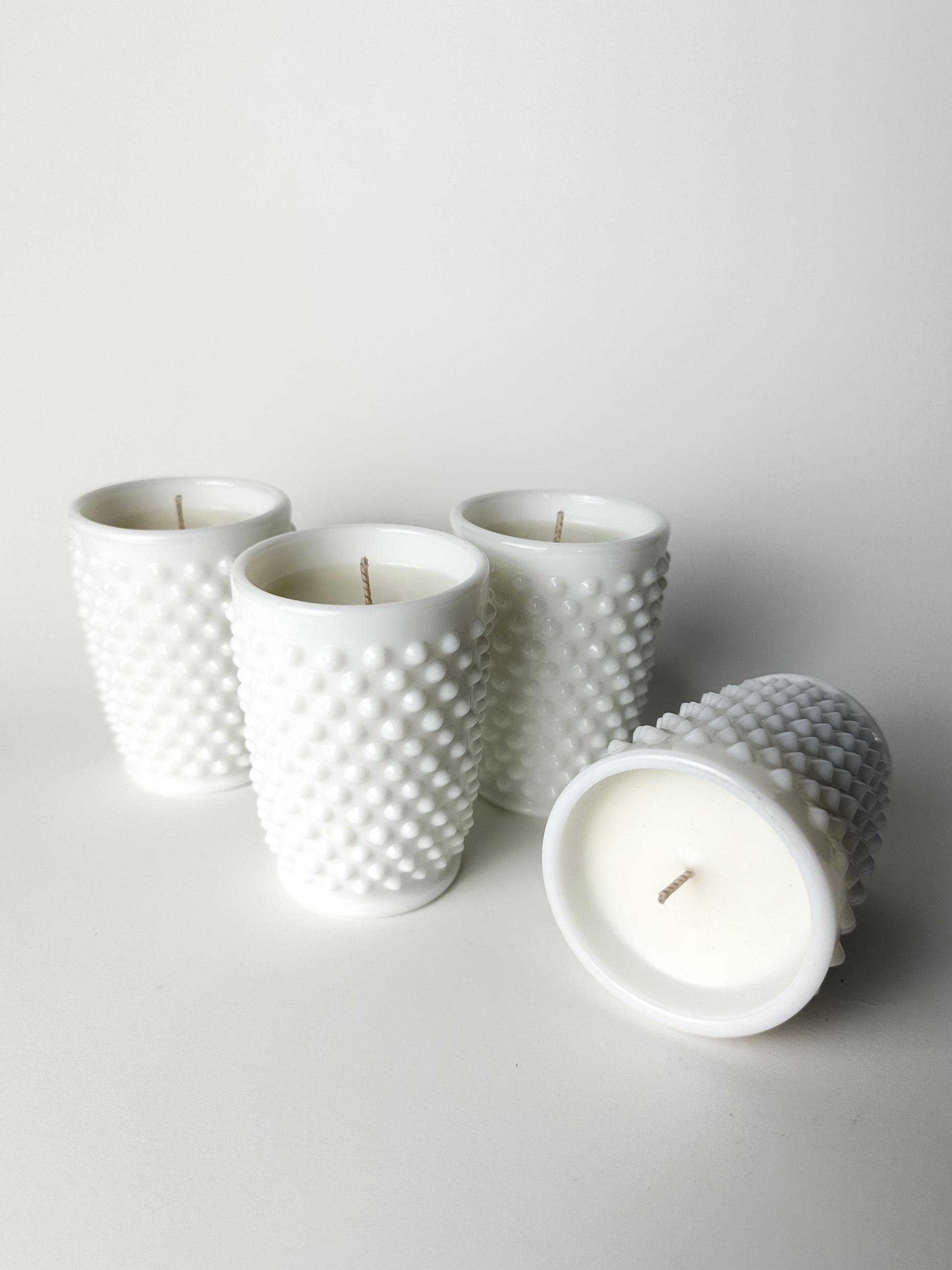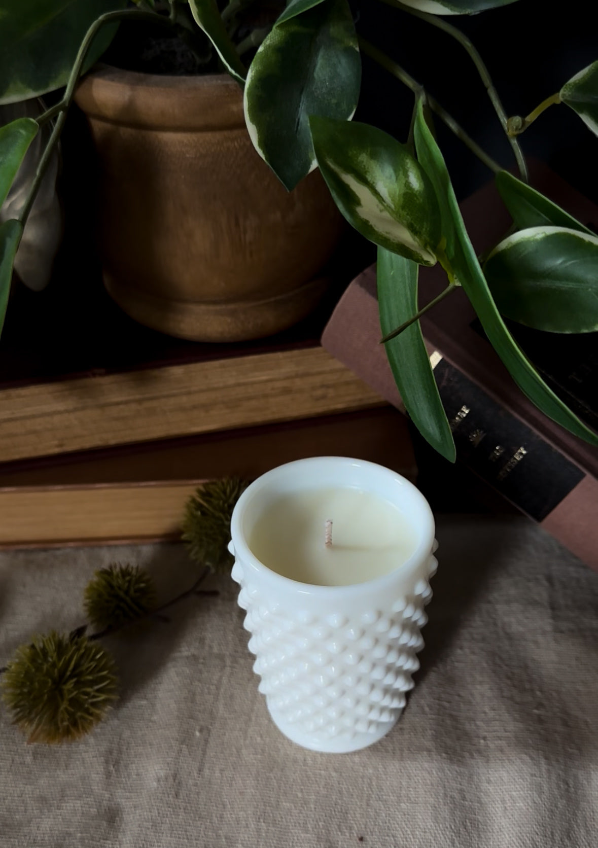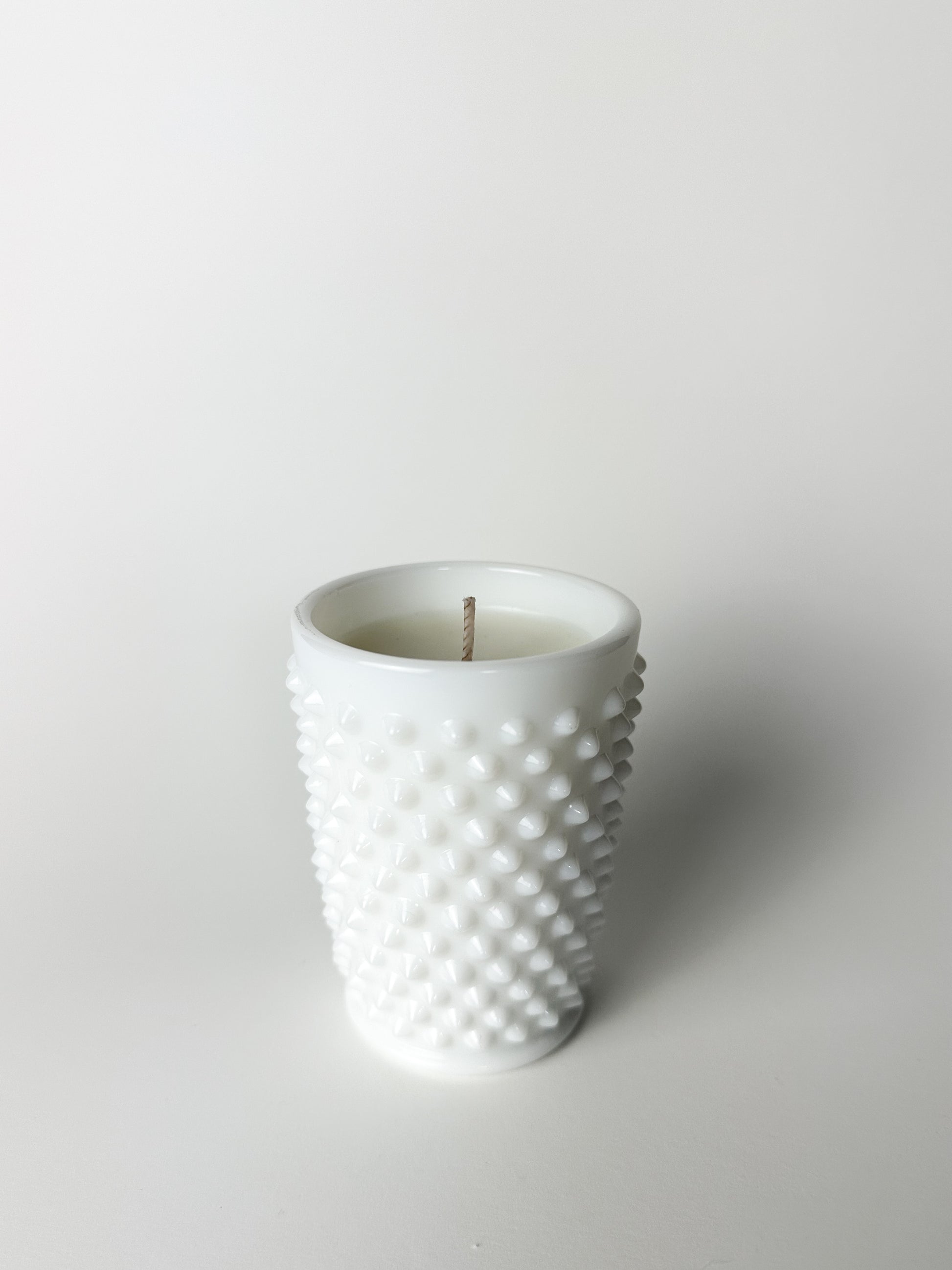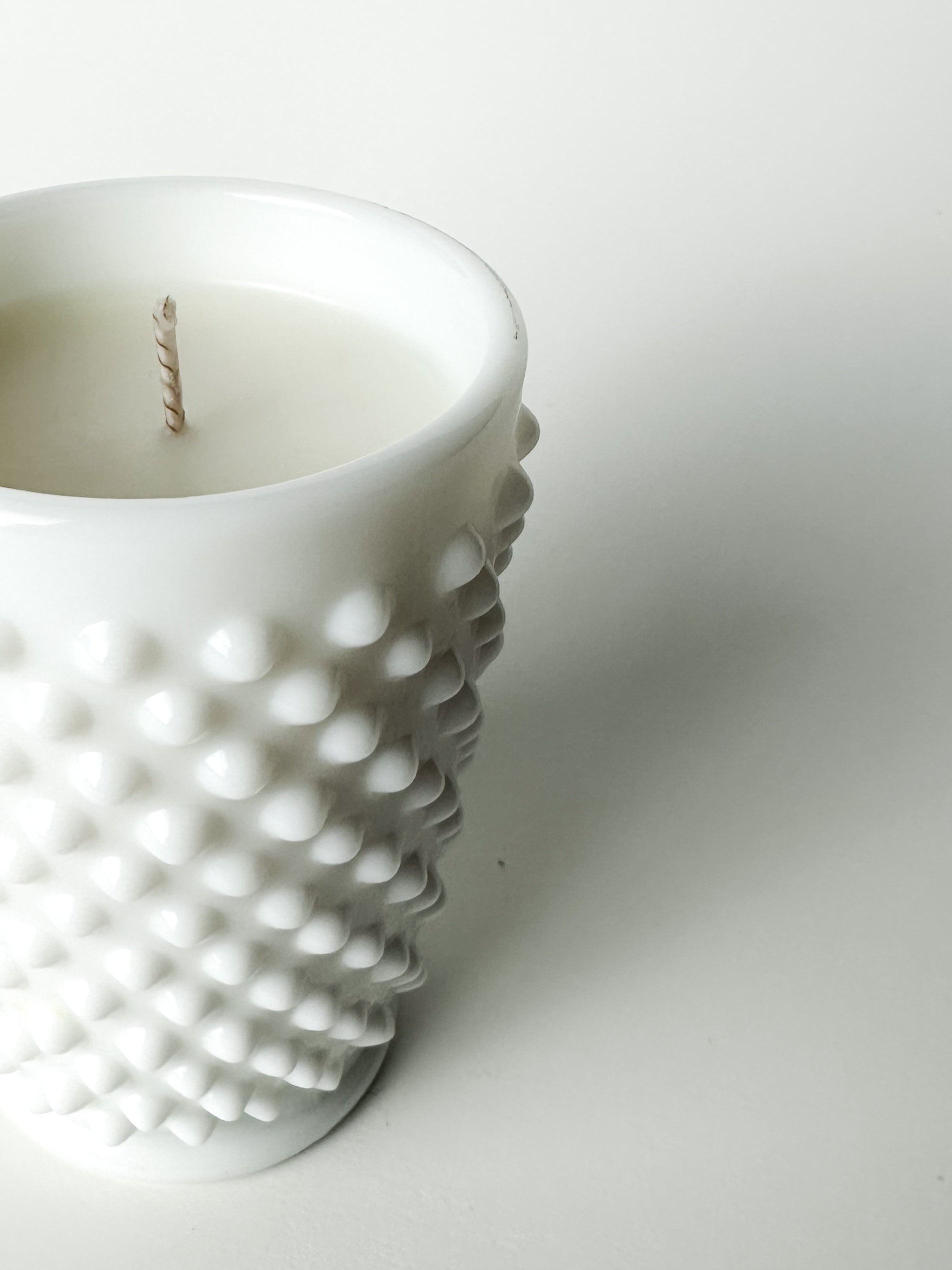 Mid-Century Fenton Hobnail Milk Glass Candle