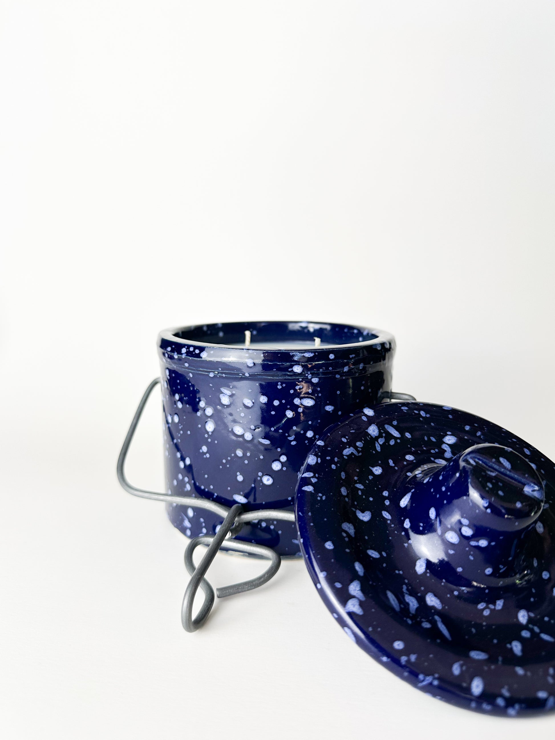 Cobalt Speckled Stoneware Crock Candle
