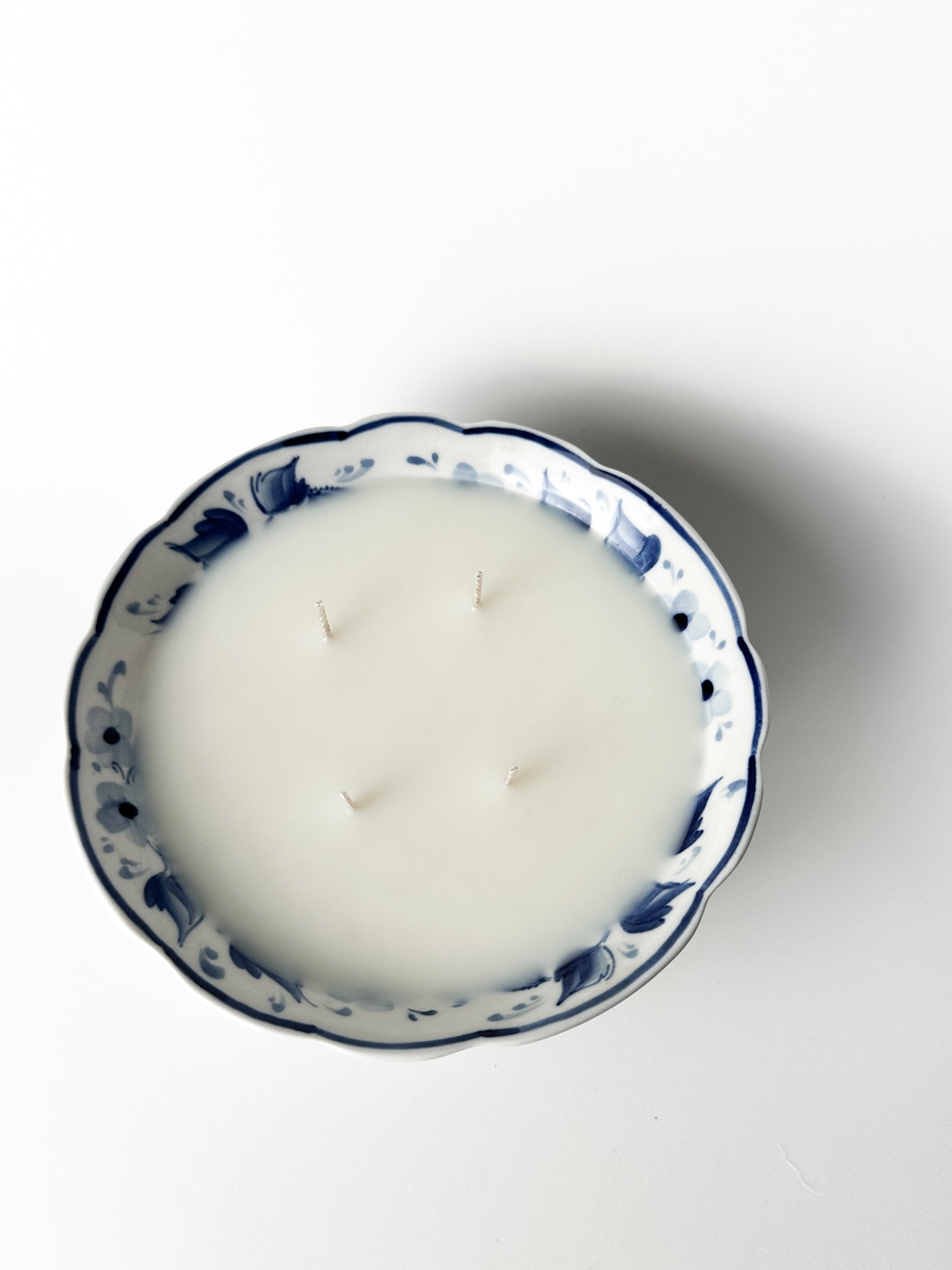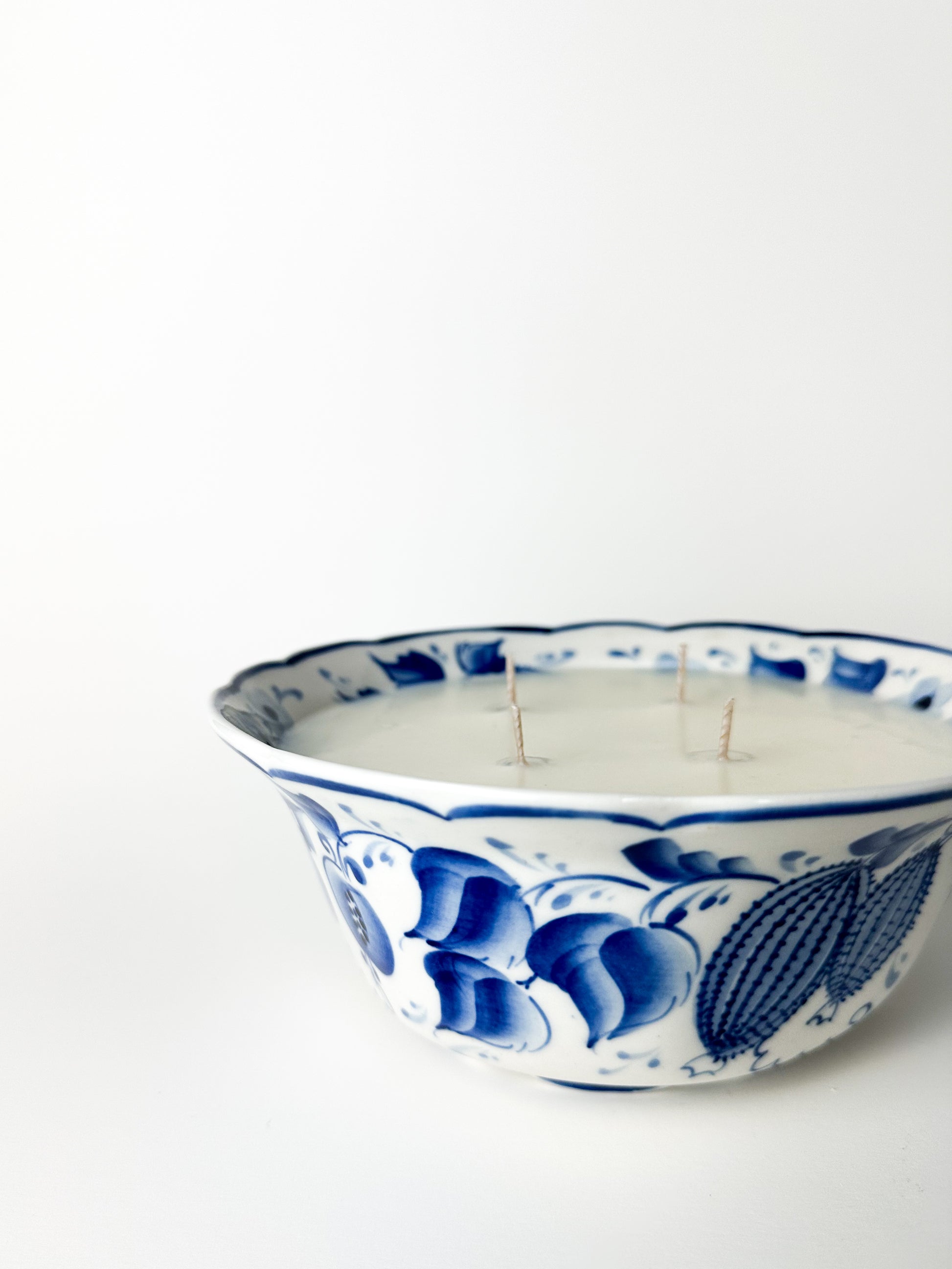 Hand-Painted Russian Blue Motif Bowl Candle