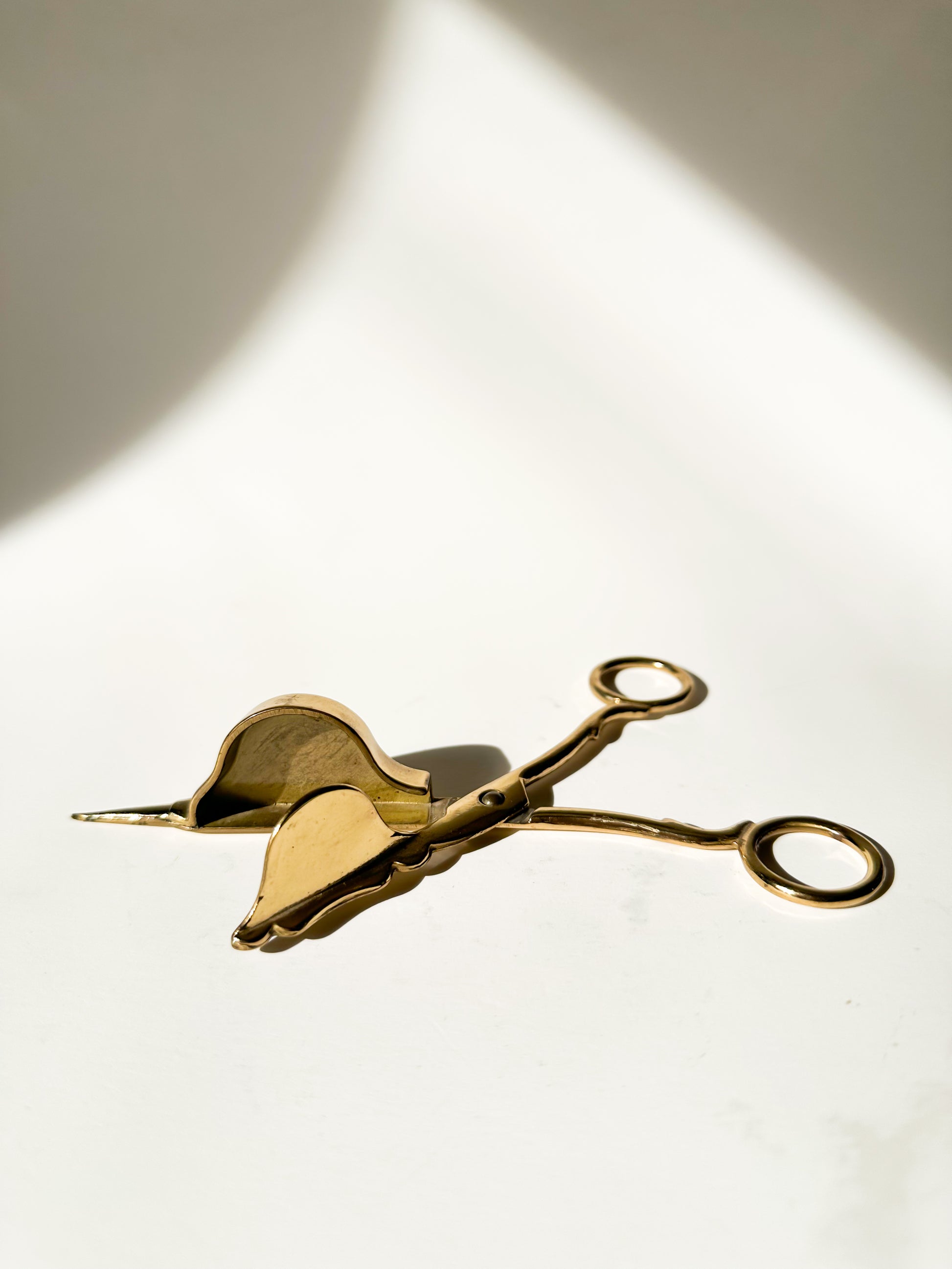 Candle snuffers have been used since the 17th and 18th centuries, when candles were the primary source of light in homes. Before modern lighting, extinguishing a candle properly was important not only for safety but also for maintaining the wick so the candle could be relit again. Brass snuffers became especially popular during the Victorian era, valued for their durability, warm patina, and decorative presence among household candle tools.